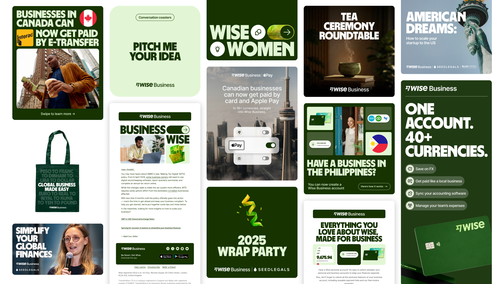 For most of my time at Wise, I have been the dedicated B2B Designer for all things creative marketing. I have produced everything from Paid Ads to Sales One-pagers, and everything in between. I also had the privilege of participating in the Wise Business Visual Identity refresh.